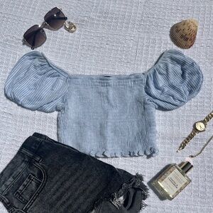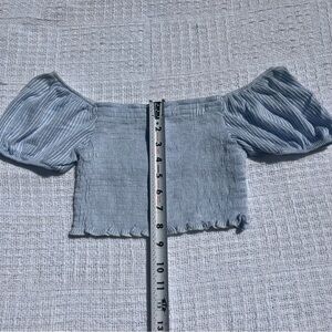 Baby blue striped crop top short sleeve Tube top style size small