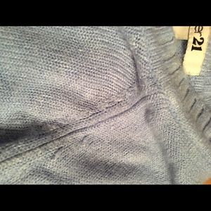 Forever 21 baby blue sweater. Very warm in winter, looks cute under a vest. Only wrinkly because it's been in a drawer. Worn less five times.