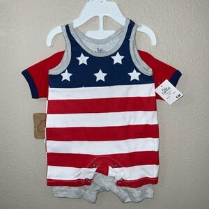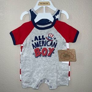 Baby boy 4th of July outfit two piece set patriotic red white and blue NEW