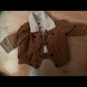 Various size boy jackets. Gray is 6 months, khaki is 6-9 months, dark gray Utility jacket is 24 months.