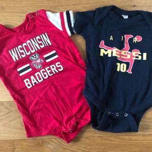6 long sleeve and short sleeve onesies sizes 3 mos or 6 mos in used but very good shape with hat pictured in the middle. (Long sleeve shirt and grey onesie to the left of first picture not included). Carter’s, Nike and Rabbit Skins brands. All 6 items included in bundle.