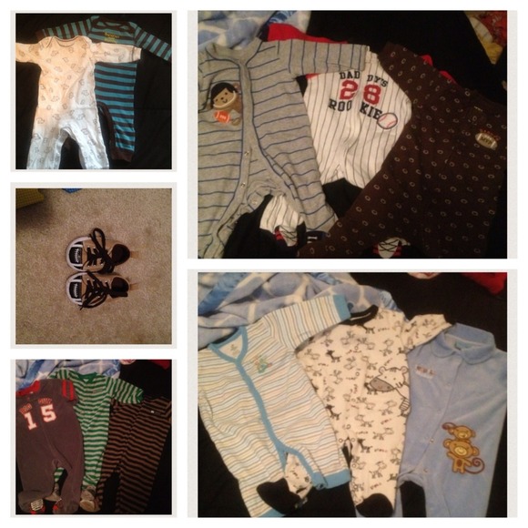 Super cute baby bundle ******you did read the other descriptions an see that some of the pjs have some rips** top two jumper pjs no longer available!!๐จ๐จ๐จ