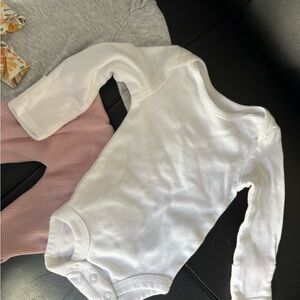 Newborn and 3 month onesies, floral newborn mittens and 0-3 month bear pants
