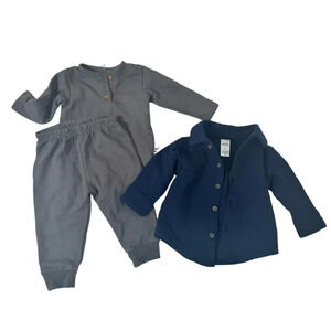 Baby bundle Carters button shirt 3M- 6/9M Henley and pants set gray