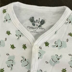 Adorable baby one piece featuring a charming elephant print. Soft and comfortable, perfect for your little one. Features snap closure for easy diaper changing.