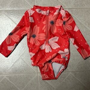Baby floral bathing suit 3-6 months excellent condition. One piece, front zipper, easy snap access to diaper.