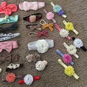 Baby girl headbands all ranging from 0-12 months. Total of 31 headbands all together.