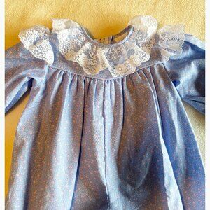 Baby girl one piece outfit. Size 3-6mo. Blue, pink and white with white lace. Non smoking home.