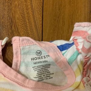 Baby girl sleeveless rainbow one piece size newborn. Excellent used condition. Washed in unscented detergent. Non smoking home. Bundle and save! Honest brand