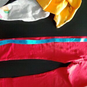 Matching red pants
