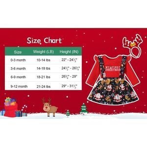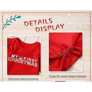 Baby girls first Christmas dress set 6-9 mos red and white skirt romper and head