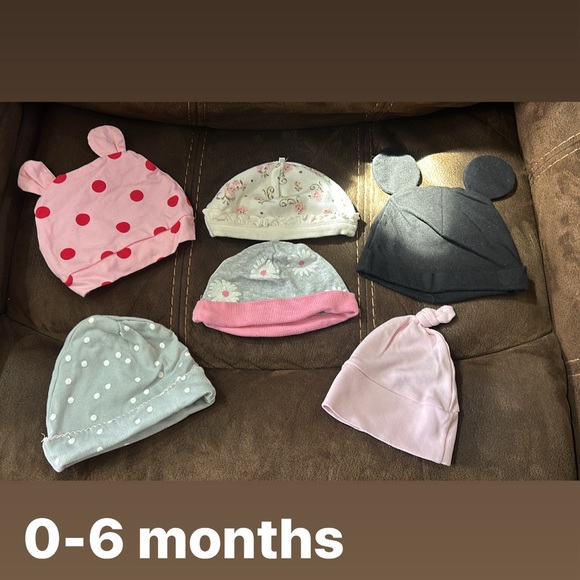 6 piece baby hat bundle, size 0-6 months