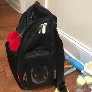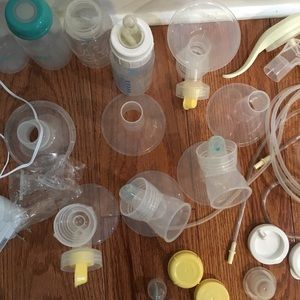 the Evenflo Advanced Double Electric Breast Pump + baby diaper bag from Fisher Price + medela breastmilk storage + baby spoon BEABA