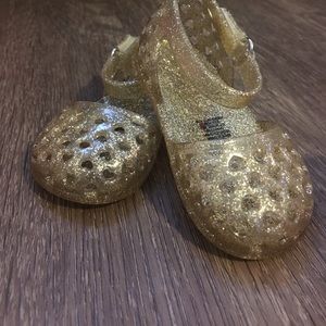Lightly used jelly sandals clear gold perfect for baby girl summer fashion