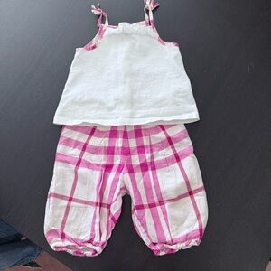 Baby kid set top straps adjustable + pants elastic pink 6/9 months Burberry