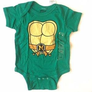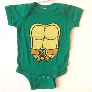 New green Baby onesie teenage mutant ninja turtles Michelangelo. Snapsuit with three snap closure.