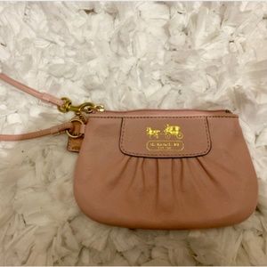 Baby pink coach wristlet perfect for money when youre on the go or to throw in your bag!