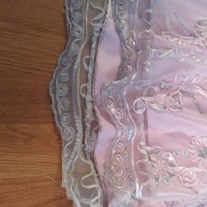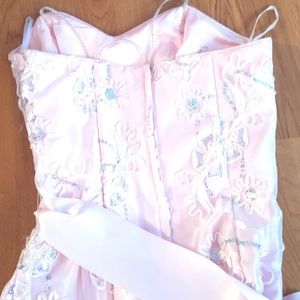 Beautiful Jessica McClintock baby pink gown by Jessica McClintock bridal... The dress has so many fabulous details... I only wish I had another use for it! Please note the bottom of the dress has normal wear and tear from use of a long dress. The dress has custom rhinestone straps added.