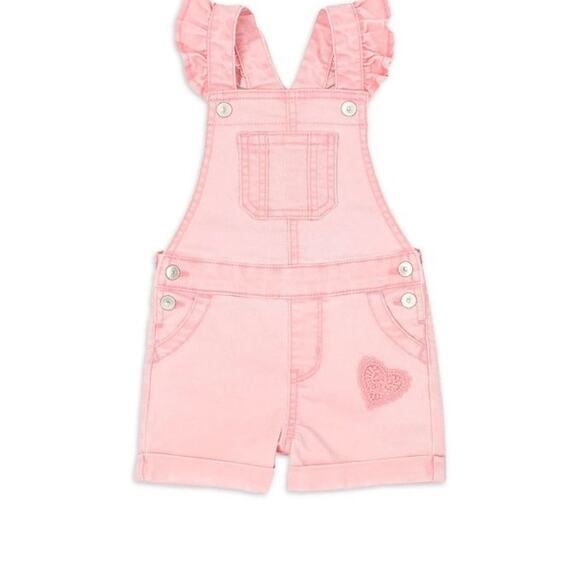 Easy fit with its simple snaps straps, with a crochet heart applique and flutter sleeves.