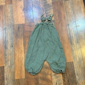 Charming olive green jumpsuit with adjustable straps. Soft and breathable fabric. Ideal for playful days.