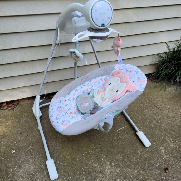 Barely used baby swing with sound machine. Able to swivel the seat and has different speeds.