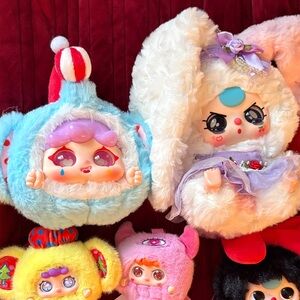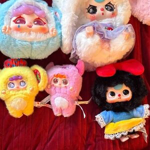 Delight your child with this vibrant plush toy set. Featuring a variety of colors, these toys are perfect for imaginative play. Each toy is crafted with soft materials for a cuddly experience. No boxes or card! Little pink one has small scuff on nose.