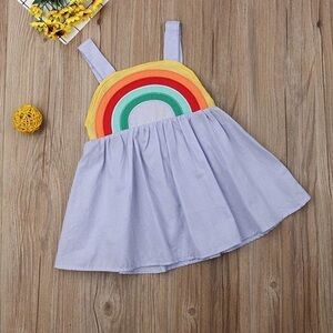 ✿Features: Sleevelsss, Backless, Strap, Rainbow design, A line, Knee length, Cute Dress.