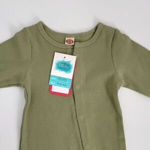 New with tag by Littlechic boutique, baby girl Fall/Winter ribbed, olive color, long-sleeved, bottom snaps, fingers covers jumpsuit.