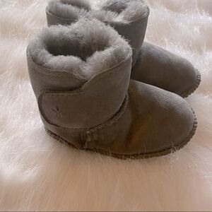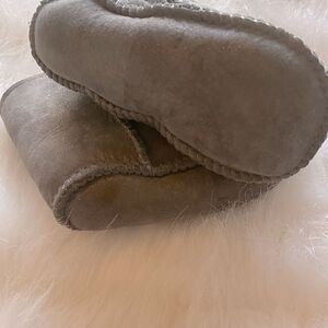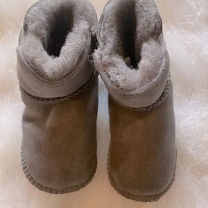 Designed for the youngest EMU Australia fan, our Baby Booties are made with fluffly double face Australian sheepskin to keep feet warm and comfortable no matter the season. Available in metallic chocolate and charcoal, the soft sole allows developing feet to flex, refine and strengthen while the velcro side tab provides ease when putting on and off.