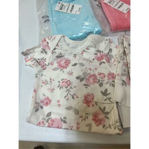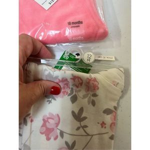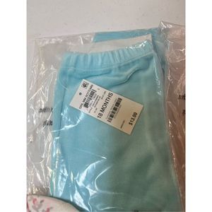 Bundle of new baby items. Pink velour pants 18 months, baby blue velour pants 18 months, and floral onesie with matching joggers 12 month. All new with tags. Would make a great gift.