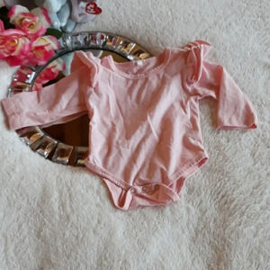 In like new condition. Adorable Baby flamingo pants with elastic waistband. Comes with matching long sleeve peach bodysuit with big ruffles on shoulders. Size 6-9M. No stains, no flaws. From smoke and pet free home.