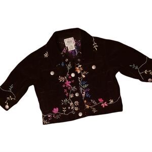 Excellent used condition. Almost no signs of wear. Nearly new. Rare and HTF colorful floral embroidery Velvet baby jacket. Jean jacket style. Size 3-12 month my daughter wore it at 12 month size.