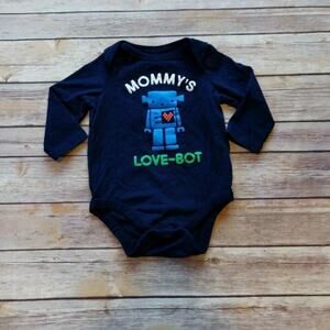 BabyGap dark blue onesie with a cute robot on the front and the words, "Mommy's Love-Bot." Three snap button closure on the bottom for easy changes. Size 6-12M. Good used condition.