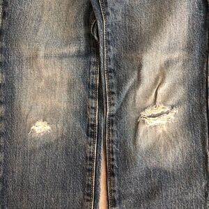 Has rips at knees and a bit of distress on the back but no hole straight through.