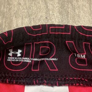 Black/pink with gold logo. Size 18mths In good condition. 90% polyester and 10% spandex