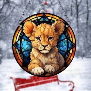 Baby Lion Acrylic Sun-Catcher Pendant with Hanging Chain 5.9 ×5.9 Inches