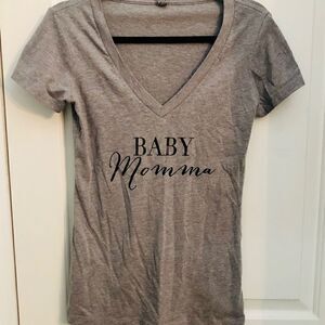 Baby Mamma vee neck gray tee. Pet and smoke free home. Bundle and save!