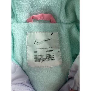 Girls pastel rainbow jacket size 24 months. Has a super faint spot on front that's difficult to photograph because it's so light. Smoke free pet free home.