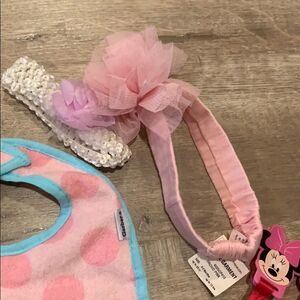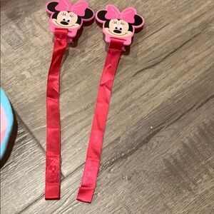 Everything is New never used .. mini mouse pacifier holders . 2 hair accessories new bib and new pacifier