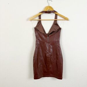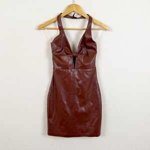 Babyboo Chocolate Brown Faux Leather Halter Mini Dress Size XS