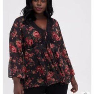 Babydoll Chiffon Lurex Crochet Detail Lace-Up Blouse