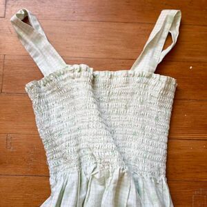 Green and white gingham, light cotton babydoll midi dress with straps. No tags, size M. #babydoll #dresses