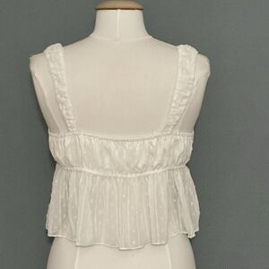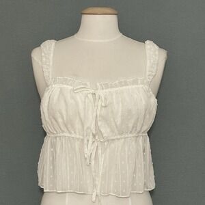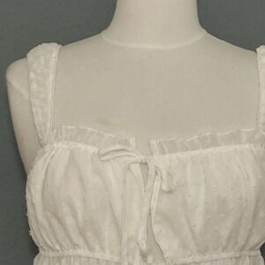 Babydoll Milkmaid Womens Top L White Swiss Dot Tank Cottage Boho Prairie Girly
