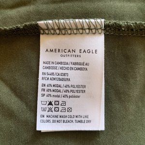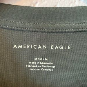 Green babydoll t-shirt from American Eagle, Some discoloration below the collar (pictured), barely noticeable. Otherwise in near-new condition! Super cute and flowy for summer and fall!