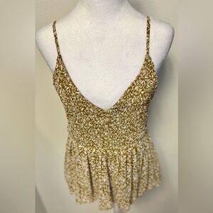 Babydoll Tan Cami V Neck Mesh Smocked Swing Y2K Style Women’s Size Medium