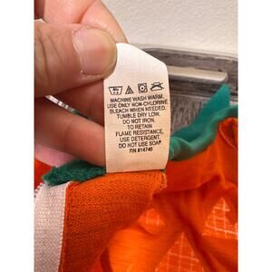 Has jack o lantern face with semi fuzzy green trim around neck.