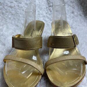 Baby phat gold platform monogram wedge straps sandals with side logo accent SZ9