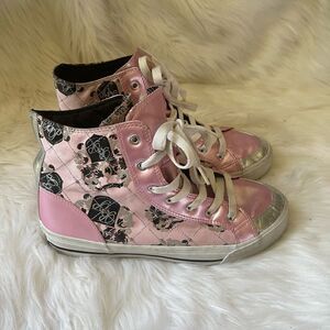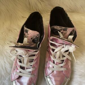 Babyphat metallic pink ,silver and black logo lace up sneakers size 7.5