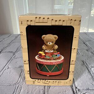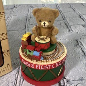 Baby's 1st Christmas 1981 ENESCO, Music Box, Bear, Train CirclingTop