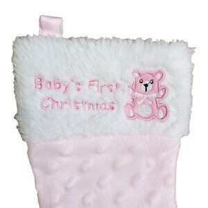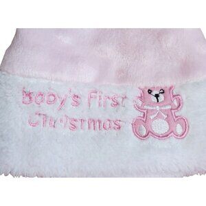 Baby's 1st Christmas Stocking & Hat Bear Pink White Plush Fur Holiday Santa Cap